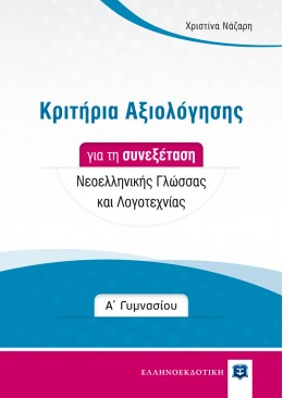 Το βιβλίο Κριτήρια Αξιολόγησης για τη συνεξέταση Νεοελληνικής Γλώσσας και Λογοτεχνίας στη Α΄ Γυμνασίου αποτελεί αναγκαίο συμπλήρωμα της έκδοσης Εκθέσεις για τη Α΄ Γυμνασίου.Συγκεκριμένα, το βιβλίο περιέχει δέκα (10) κριτήρια αξιολόγησης που γράφτηκαν σύμφωνα με της προτάσεις του Ινστιτούτου Εκπαιδευτικής Πολιτικής (ΙΕΠ) για τον νέο τρόπο αξιολόγησης του μαθήματος.