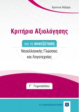Το βιβλίο Κριτήρια Αξιολόγησης για τη συνεξέταση Νεοελληνικής Γλώσσας και Λογοτεχνίας στη Γ΄ Γυμνασίου αποτελεί αναγκαίο συμπλήρωμα της έκδοσης Εκθέσεις για τη Γ΄ Γυμνασίου.Συγκεκριμένα, το βιβλίο περιέχει δέκα (10) κριτήρια αξιολόγησης που γράφτηκαν σύμφωνα με της προτάσεις του Ινστιτούτου Εκπαιδευτικής Πολιτικής (ΙΕΠ) για τον νέο τρόπο αξιολόγησης του μαθήματος.