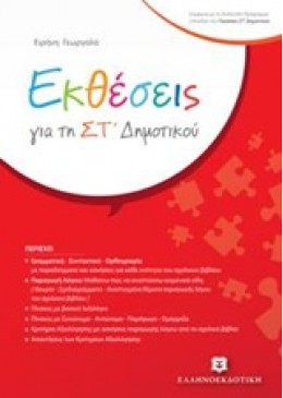 Το βιβλίο Εκθέσεις για τη ΣΤ΄ Δημοτικού αποτελεί ένα απαραίτητο βοήθημα για το μάθημα της Γλώσσας Στ΄Δημοτικού. Έχει στόχο να βοηθήσει τον μαθητή/-τρια:Να συστηματοποιήσει τις γνώσεις του σχετικά με τα γραμματικά και συντακτικά φαινόμενα του σχολικού βιβλίου.