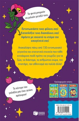 Ανακαλύψτε πάνω από 130 εντυπωσιακά γεγονότα και στατιστικά στοιχεία που κάθε εννιάχρονο παιδί πρέπει να γνωρίζει για τα ζώα, το διάστημα, το ανθρώπινο σώμα, την επιστήμη, τον αθλητισμό και πολλά άλλα!