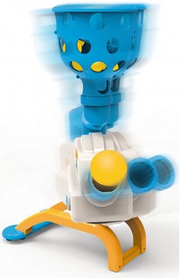Ποιος θα πιάσει τις περισσότερες μπάλες; Γέμισε τον εκτοξευτή. Αυτός περιστρέφεται και ρίχνει βολές τυχαία! Φόρεσε το καλάθι στο κεφάλι, κινήσου γρήγορα για να πιάσεις τις πιο πολλές μπάλες και να είσαι ο νικητής! Ένα παιχνίδι ταχύτητας και ευελιξίας για όλη την οικογένεια! Περιεχόμενα: 1 εκτοξευτής, 1 γεμιστήρας, 2 καλάθια, 2 στηρίγματα, 1 βάση, 12 μπάλες, αυτοκόλλητα. Διαβάστε προσεχτικά τις οδηγίες χρήσης και φροντίδας πριν παίξετε για πρώτη φορά.