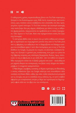 Ο καθημερινός χρόνος παρακολούθησης βίντεο στο YouTube παγκοσμίως ξεπερνά το ένα δισεκατομμύριο ώρες. Κάθε λεπτό, περισσότερες από πεντακόσιες ώρες επιπλέον υλικού ανεβάζονται στην ιστοσελίδα, ένα άνευ προηγουμένου τεχνικό επίτευγμα. Το YouTube επινόησε την οικονομία προσοχής στην οποία ζούμε όλοι μας σήμερα, αλλάζοντας για πάντα το πώς οι άνθρωποι ψυχαγωγούνται, ενημερώνονται και αμείβονται για το ονλάιν περιεχόμενο. Όλοι ξέρουν το YouTube. Αλλά στην πραγματικότητα κανείς δεν ξέρει πώς λειτουργεί.Το ανά χείρας βιβλίο είναι το πρώτο που με τρόπο καθηλωτικό καταγράφει το τεχνολογικό και επιχειρηματικό μοντέλο πίσω από το YouTube μέσα από τις αφηγήσεις των ανθρώπων που το διαχειρίζονται και διάσημων αστέρων που γεννήθηκαν χάρη σ αυτό. Δίνει λεπτομέρειες για το πώς το YouTube βοήθησε την Google, τη μητρική του εταιρεία, να αποκτήσει ασύλληπτη δύναμη, ενώ εξιστορεί το χρονικό μιας επανάστασης στον χώρο των μίντια και της ξέφρενης κούρσας μιας ολόκληρης βιομηχανίας. Κυρίως, όμως, αποτυπώνει το πώς η αφοσίωση σε μια απλή ιδέα άσε τον καθένα να αναμεταδίδει περιεχόμενο ονλάιν και να βγάζει χρήματα από αυτό απελευθέρωσε μια μηχανή εθισμού και κατακραυγής που βγήκε εκτός ελέγχου και αναδιαμόρφωσε τη σύγχρονη πραγματικότητα.