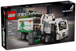 Διατήρησε την πόλη καθαρή με το LEGO® Technic Mack® LR Electric Garbage Truck. Το πραγματικό όχημα Mack κινείται με ηλεκτρισμό κι έτσι η συλλογή απορριμμάτων γίνεται πολύ πιο πράσινη. Έτοιμος να δοκιμάσεις αυτό το μοντέλο; 'Ανοιξε τις πόρτες για πρόσβαση στην καμπίνα του χειριστή και μετά οδήγησε το όχημα στη θέση που πρέπει. Χρησιμοποίησε τον πλευρικό φορτωτή για να πιάσεις, να σηκώσεις και να αναποδογυρίσεις τους κάδους απορριμμάτων και μετά συνέχισε στην επόμενη στάση σου.