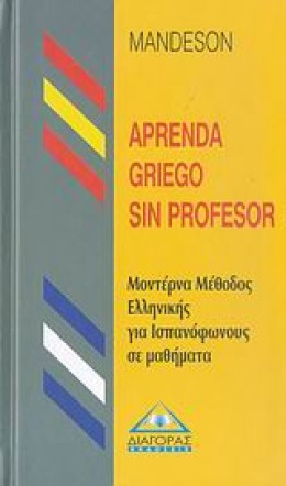 Nuestra editorial ofrece a los hispanohablantes la oportunidad de conocer la lengua griega moderna. Este metodo, "Aprenda griego sin profesor", pertenece a la muy conocida serie de mιtodos de aprendizaje de lenguas Mandeson.Consiste de 25 lecciones que contienen un rico vocabulario, pronunciacion exacta y la gramatica completa del griego moderno. Tambien contiene ejercicios con sus respectivas respuestas, una gran variedad de textos y dialogos que le permitiran al estudiante de griego practicar el idioma.