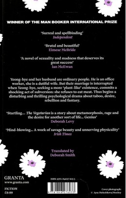 Yeong-hye and her husband are ordinary people. He is an office worker with moderate ambitions and mild manners; she is an uninspired but dutiful wife. The acceptable flatline of their marriage is interrupted when Yeong-hye, seeking a more plant-like existence, decides to become a vegetarian, prompted by grotesque recurring nightmares. In South Korea, where vegetarianism is almost unheard-of and societal mores are strictly obeyed, Yeong-hyes decision is a shocking act of subversion. Her passive rebellion manifests in ever more bizarre and frightening forms, leading her bland husband to self-justified acts of sexual sadism. His cruelties drive her towards attempted suicide and hospitalisation. She unknowingly captivates her sisters husband, a video artist. She becomes the focus of his increasingly erotic and unhinged artworks, while spiralling further and further into her fantasies of abandoning her fleshly prison and becoming impossibly, ecstatically a tree.Fraught, disturbing and beautiful, The Vegetarian is a novel about modern day South Korea, but also a novel about shame, desire and our faltering attempts to understand others, from one imprisoned body to another.