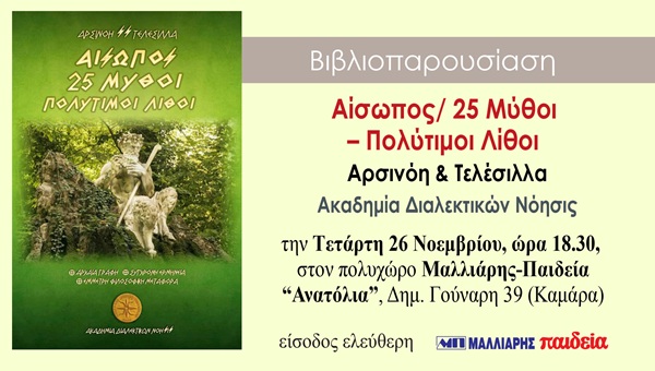 Διάλεξη Φιλοσοφίας - βιβλιοπαρουσίαση με τίτλο “Αίσωπος / 25 Μύθοι – Πολύτιμοι Λίθοι”