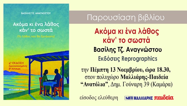 Η τέταρτη έκδοση του βιβλίου "Ακόμα κι ένα λάθος κάν’ το σωστά (το λάθος που θα ξανάκανα)" (εκδόσεις Reprographics),